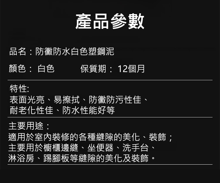 防黴防水白色塑鋼泥