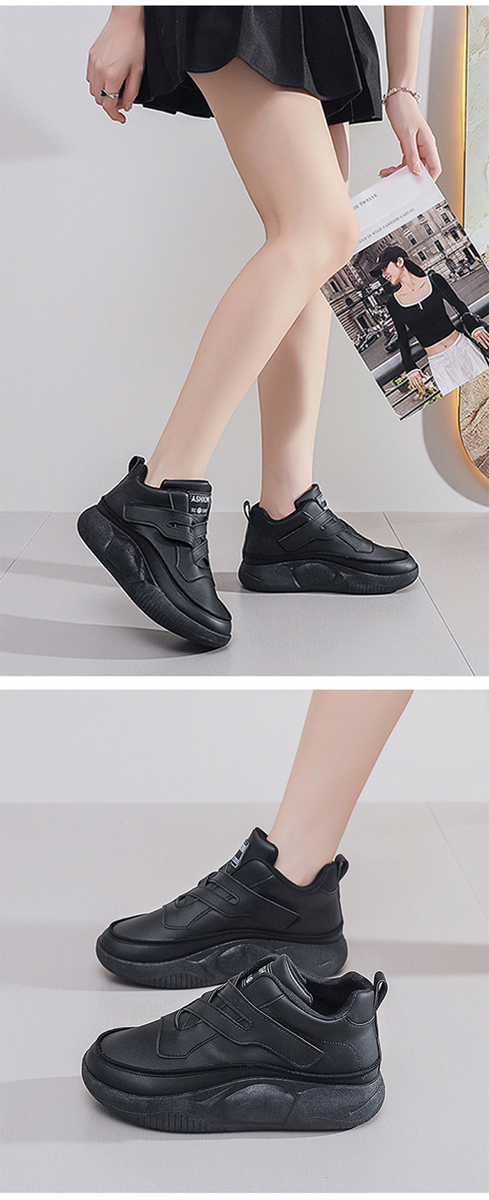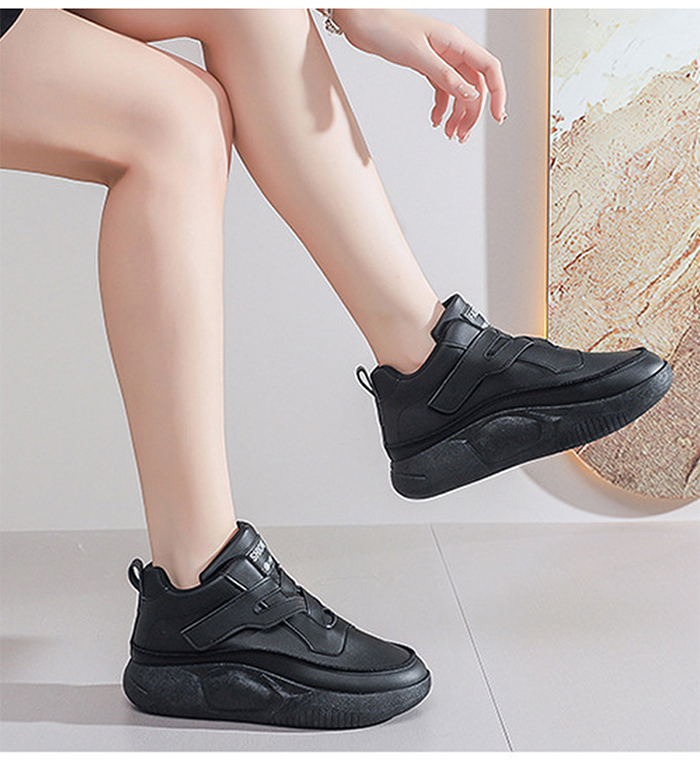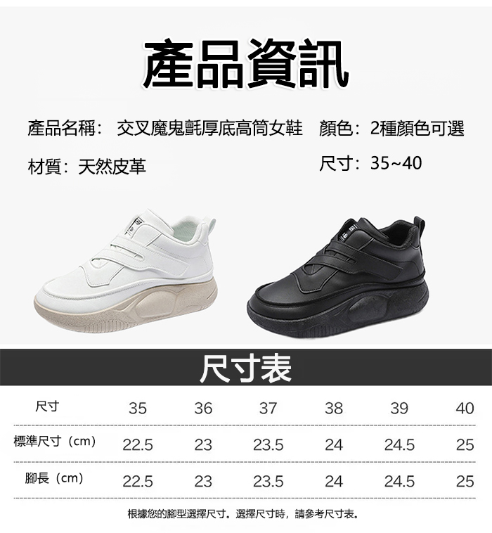 交叉魔鬼氈厚底高筒女鞋